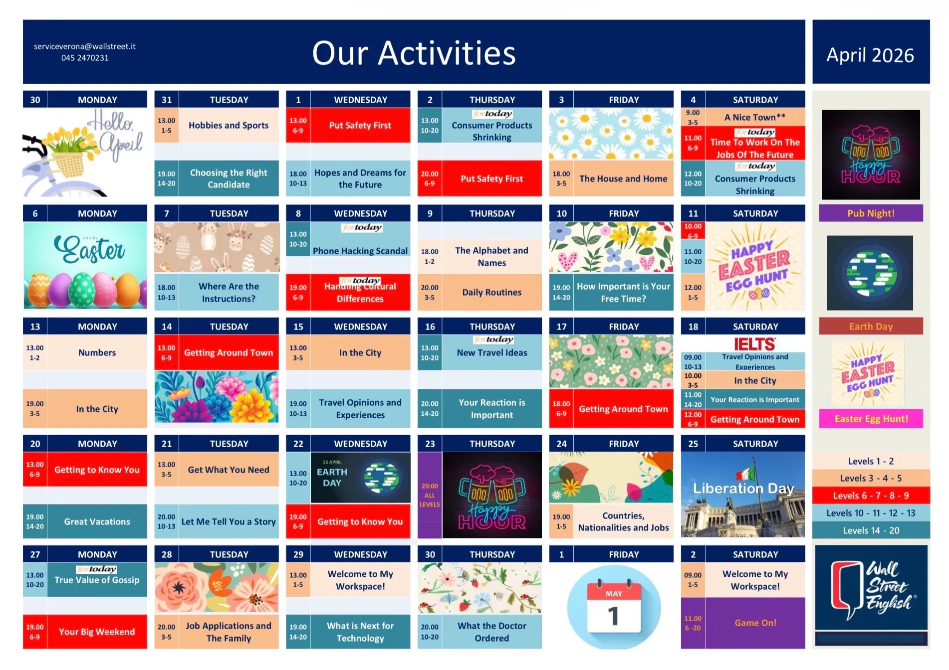 Segui le lezioni di inglese più adatte al tuo livello a Verona. Preparati con i nostri corsi mirati per le certificazioni IELTS, TOEFL e TOEIC e sostieni gli esami di lingua nei Test Center ufficiali di Wall Street English.